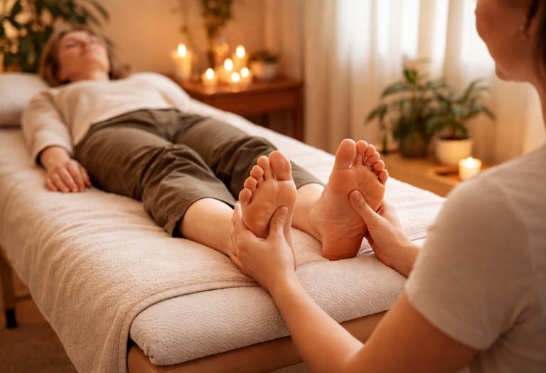 Deep work and stimulation on the feet promoting circulation and relaxation to often neglected tissues.